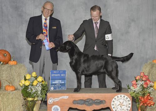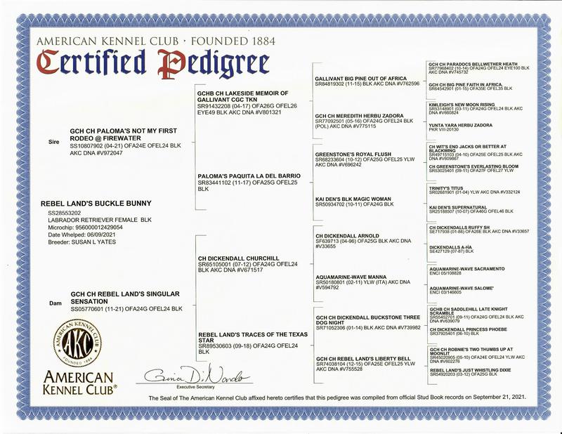 (BOSS BPISS GCHB Paloma's Not My First Rodeo @ Firewater, "Bronco" X GCH CH Rebel Land's Singular Sensation, "Sassy")